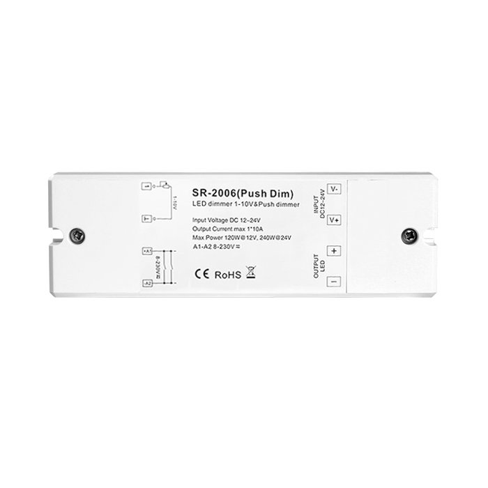 0/1-10V stmívač pro LED pásky SR-2006-PUSH DIM je navržen tak, aby poskytoval pokročilé funkce řízení osvětlení s nejnovějšími osvětlovacími systémy.