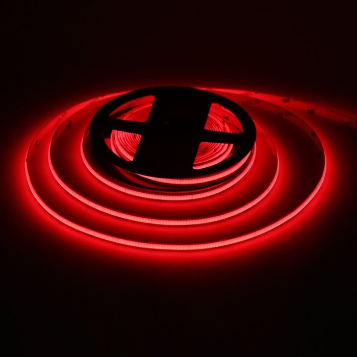 Červený COB LED pásek 24V s produktovým označením COB-SC24480 je výrobkem s odpovídajícím standardem jakosti. Použitá technologie COB (Chip On Board) umožňuje umístit velké množství LED čipů do jedné souvislé linie osvětlení. Rovnoměrný světelný tok bez viditelných bodů světla patří mezi největší výhody tohoto výrobku, který vyzařuje pouze červené světlo s definovaným sytým odstínem, odpovídajícím specifickým požadavkům na barevnou věrnost a konzistenci. Od prvotního technického návrhu až po koncovou výrobu, byl kladen důraz na to, aby jeho účinnost (lm/W), produktové zpracování a design byly na vysoké úrovni kvality. Ve spojení s dalšími komponenty je tento produkt určen pro malosériovou či individuální výrobu svítidel.