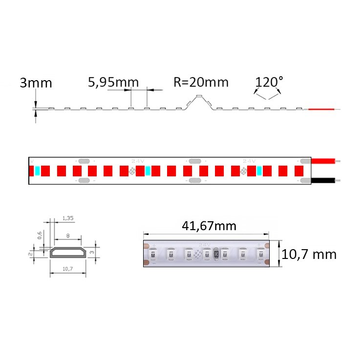 Červený LED pásek 24V Lux Miners IP65 | 10W | 168LED