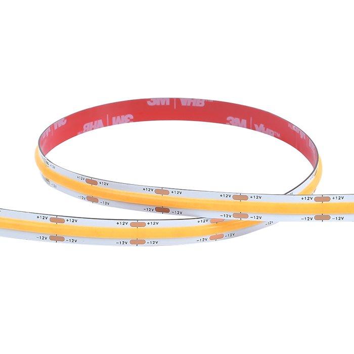 Bílá COB LED páska 12V COB-SC12320 je na své spodní straně opatřena speciální oboustrannou lepenkou 3M VHB. Tato samolepící páska slouží k montáži na zvolený podklad (důrazně doporučujeme využít LED profilové lišty z důvodu chlazení a ochrany COB LED pásku). Ten musí být hladký a odmaštěný. Připojení LED pásku k napájecímu napětí doporučujeme provést pájením.