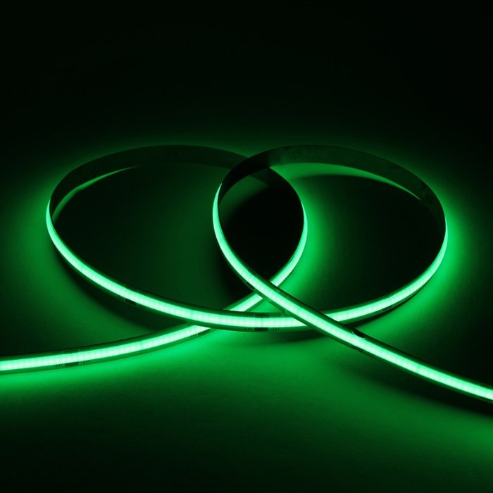 Zelený COB LED pásek 24V s produktovým označením COB-SC24480 je výrobkem s odpovídajícím standardem jakosti. Použitá technologie COB (Chip On Board) umožňuje umístit velké množství LED čipů do jedné souvislé linie osvětlení. Rovnoměrný světelný tok bez viditelných bodů světla patří mezi největší výhody tohoto výrobku, který vyzařuje pouze zelené světlo s definovaným sytým odstínem, odpovídajícím specifickým požadavkům na barevnou věrnost a konzistenci. Od prvotního technického návrhu až po koncovou výrobu, byl kladen důraz na to, aby jeho účinnost (lm/W), produktové zpracování a design byly na vysoké úrovni kvality. Ve spojení s dalšími komponenty je tento produkt určen pro malosériovou či individuální výrobu svítidel.