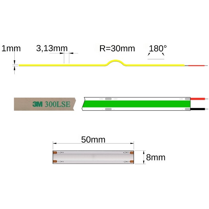 Doplňující technické vlastnosti pro zelený COB 24V LED pásek COB-SC24480