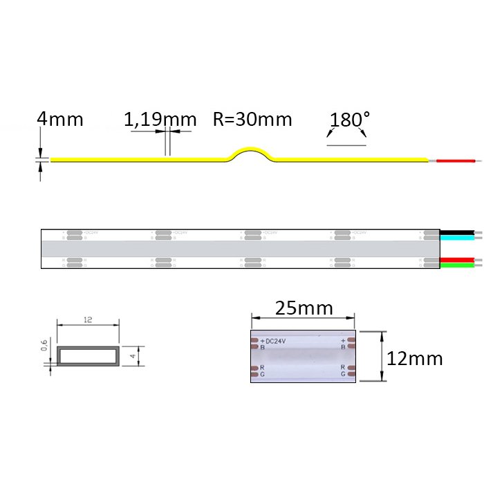 COB RGB 24V LED pásek IP65 Lux Miners | 14W | 120LED