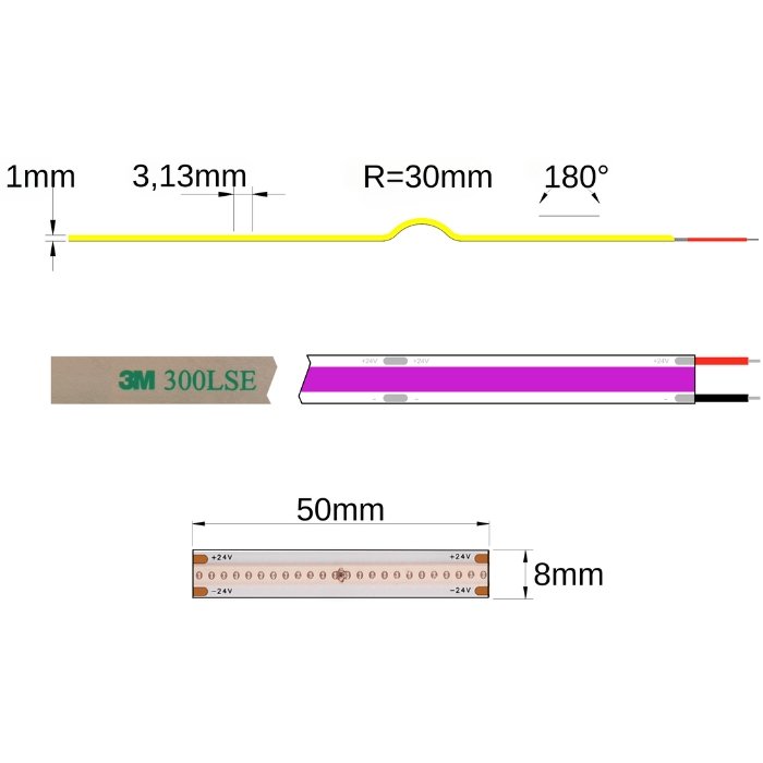 Doplňující technické vlastnosti pro fialový COB 24V LED pásek COB-SC24480