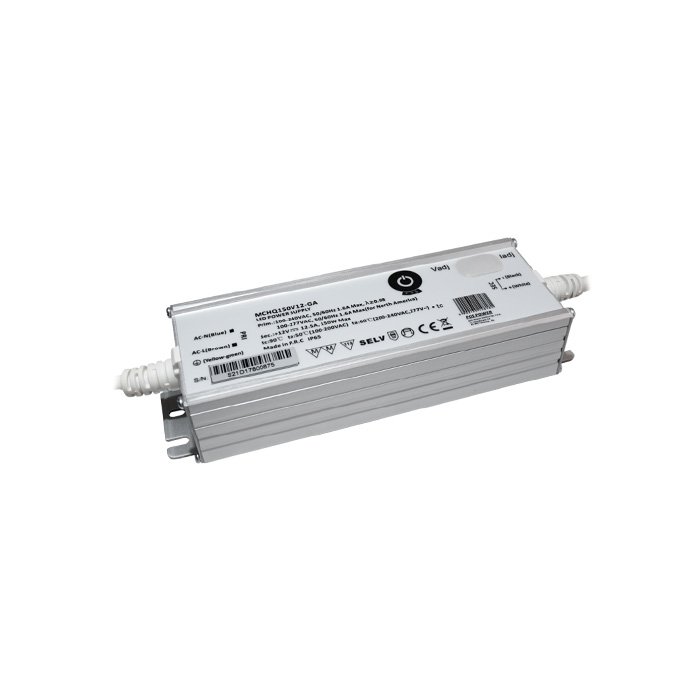 IP65 LED zdroj 12V s produktovým označením MCHQ150V12-GA je produktem respektovaného evropského výrobce POS POWER. Tento zdroj konstantního napětí (CV - Constant voltage) nabízí moderní funkce a kvalitní elektroniku včetně volitelné možnosti nastavení výstupního napětí a proudu potenciometry. Ty jsou ukryty pod gumovým těsněním z pohledové strany. Díky popsaným vlastnostem doporučujeme tento produkt pro napájení elektroniky nebo jako napájecí zdroj pro LED pásky.