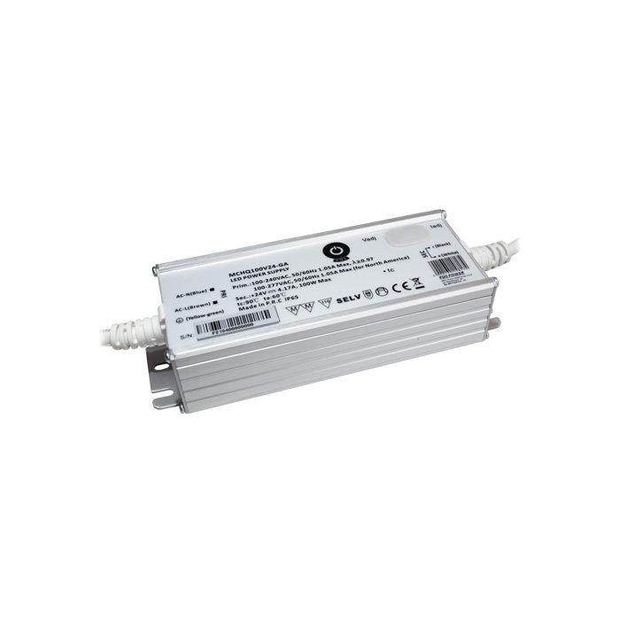 IP65 LED zdroj 24V s produktovým označením MCHQ100V24-GA je produktem respektovaného evropského výrobce POS POWER. Tento zdroj konstantního napětí (CV - Constant voltage) nabízí moderní funkce a kvalitní elektroniku včetně volitelné možnosti nastavení výstupního napětí a proudu potenciometry. Ty jsou ukryty pod gumovým těsněním z pohledové strany. Díky popsaným vlastnostem doporučujeme tento produkt pro napájení elektroniky nebo jako napájecí zdroj pro LED pásky.