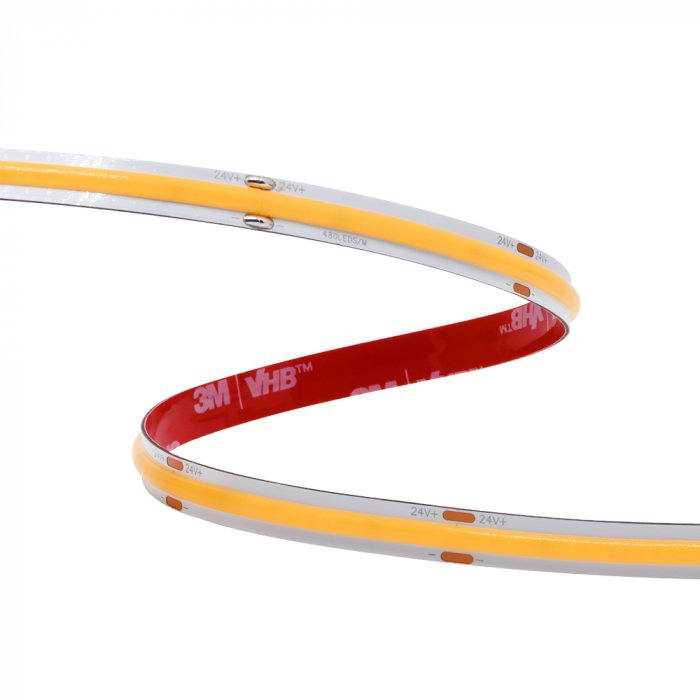 Bílý COB LED pásek 24V s produktovým označením COB-SC24480 je výrobkem špičkových světelných parametrů. Použitá technologie COB (Chip On Board) umožňuje umístit velké množství LED čipů do jedné souvislé linie osvětlení. Rovnoměrný světelný tok bez viditelných bodů světla patří mezi největší výhody tohoto výrobku, který vyzařuje pouze bílé světlo v nabízených teplotách a chromatičnosti světla. Od prvotního technického návrhu až po koncovou výrobu byl kladen důraz na to, aby jeho účinnost (lm/W), produktové zpracování a design splňovaly odpovídající kvalitativní standardy. Společně s dalšími komponenty slouží pro malosériovou a individuální výrobu svítidel.