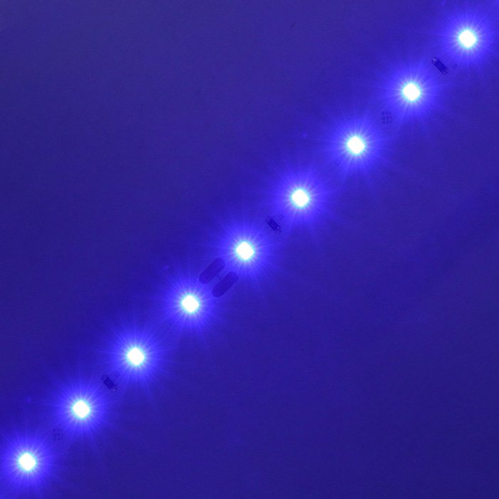 - SMD2835 (Surface-Mounted Device) technologie - se vyznačuje vysokou efektivitou a účinností s přihlédnutím na dobré pasivní chlazení. Diody jsou namontovány na hliníkové chladící podložce. Tento aspekt prodlužuje životnost a umožňuje pro modrý LED pásek SMD2835 12V dosahovat vysoké svítivosti a účinnosti s vyzařovacím úhlem 120°.