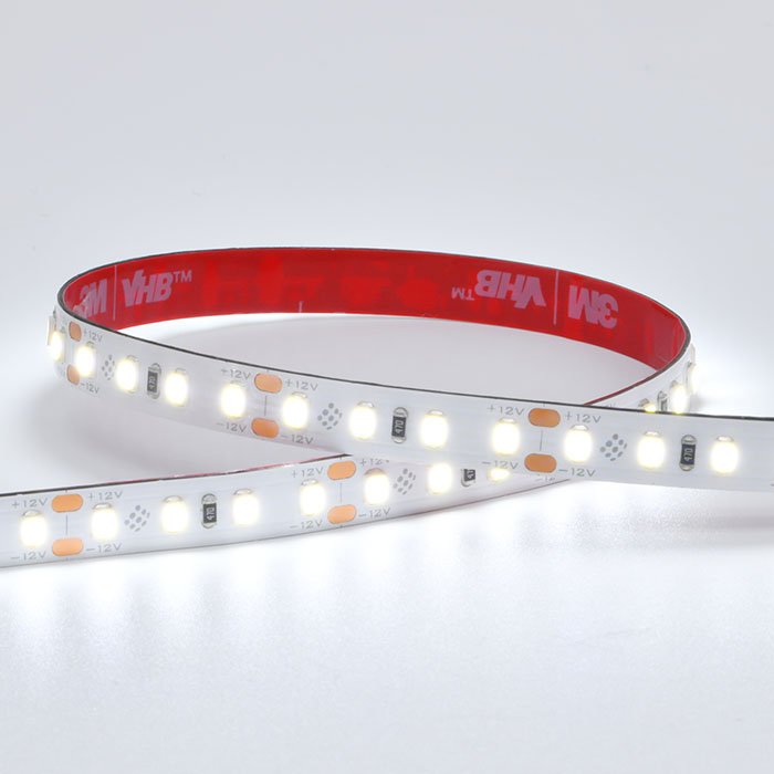 Bílá LED páska 12V SC12128 je na své spodní straně opatřena speciální oboustrannou lepenkou 3M VHB. Tato samolepící páska slouží k montáži na zvolený podklad (důrazně doporučujeme využít LED profilové lišty z důvodu chlazení a ochrany LED pásku). Ten musí být hladký a odmaštěný. Připojení LED pásku k napájecímu napětí doporučujeme provést pájením.