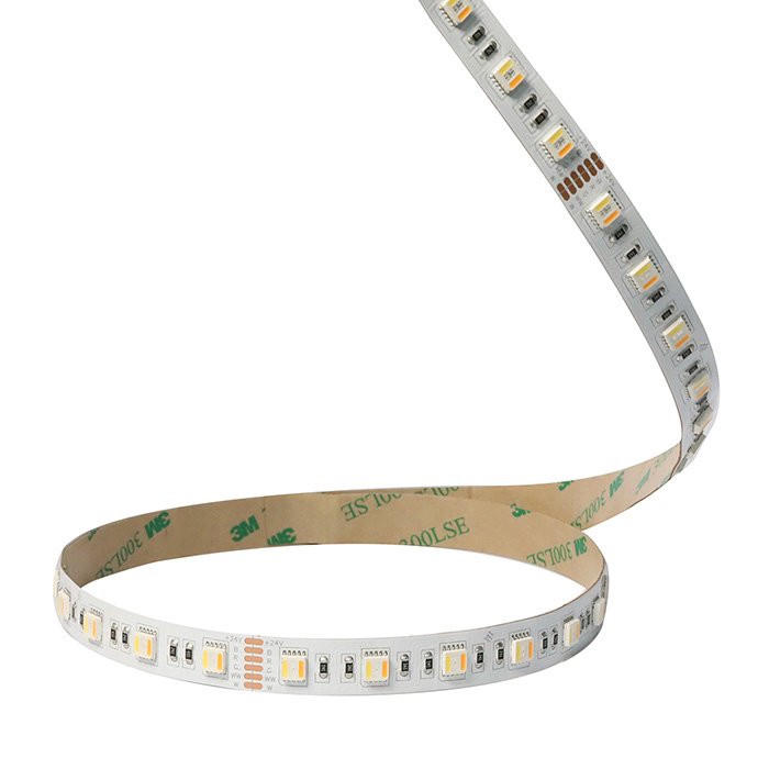 RGB + CCT / RGBWW LED pásek 24V s produktovým označením RGBWW2460 je výrobkem s odpovídajícím standardem jakosti a vynikajícím poměrem ceny a užitné hodnoty. Od prvotního technického návrhu až po koncovou výrobu byl kladen důraz na to, aby jeho účinnost (lm/W), produktové zpracování a design splňovaly vysoké standardy kvality, určené pro širokou škálu aplikací. Výhodou technologie RGBWW (Red, Green, Blue a Warm White - WW + Cool White - CW) je možnost vytvářet široké spektrum barev nebo ovládat chromatičnost bílého světla v režimu CCT (Correlated Color Temperature) 2200K-6500K. Při malosériové a individuální výrobě svítidel, pro kterou je 24V RGBWW pásek určen, oceníte jeho velkou variabilitu barev pro vytvoření dynamických nebo dekorativních scénářů osvětlení.