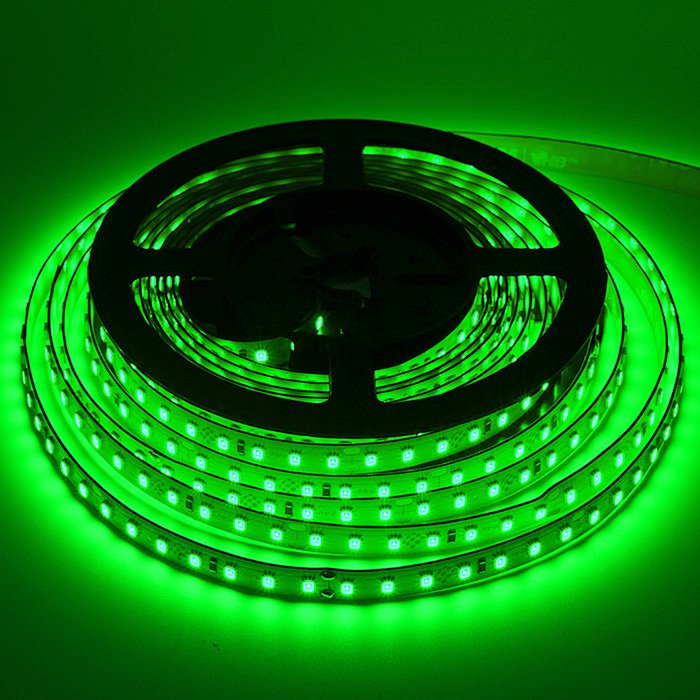 - SMD2835 (Surface-Mounted Device) technologie - se vyznačuje vysokou efektivitou a účinností s přihlédnutím na dobré pasivní chlazení. Diody jsou namontovány na hliníkové chladící podložce. Tento aspekt prodlužuje životnost a umožňuje pro zelený LED pásek SMD2835 24V dosahovat vysoké svítivosti a účinnosti s vyzařovacím úhlem 120°.