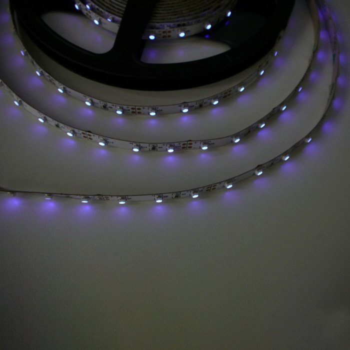 Ultrafialový LED pásek 12V splňuje třídu krytí IP20. Je osazen značkovými čipy Sanan v počtu 60 LED /1m. Efektivitu a svítivost zajišťuje světelný tok s rozsahem barevných teplot: