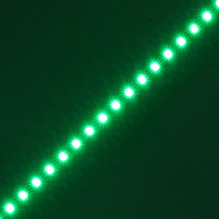 - SMD2835 (Surface-Mounted Device) technologie - se vyznačuje vysokou efektivitou a účinností s přihlédnutím na dobré pasivní chlazení. Diody jsou namontovány na hliníkové chladící podložce. Tento aspekt prodlužuje životnost a umožňuje pro zelený LED pásek SMD2835 24V dosahovat vysoké svítivosti a účinnosti s vyzařovacím úhlem 120°.