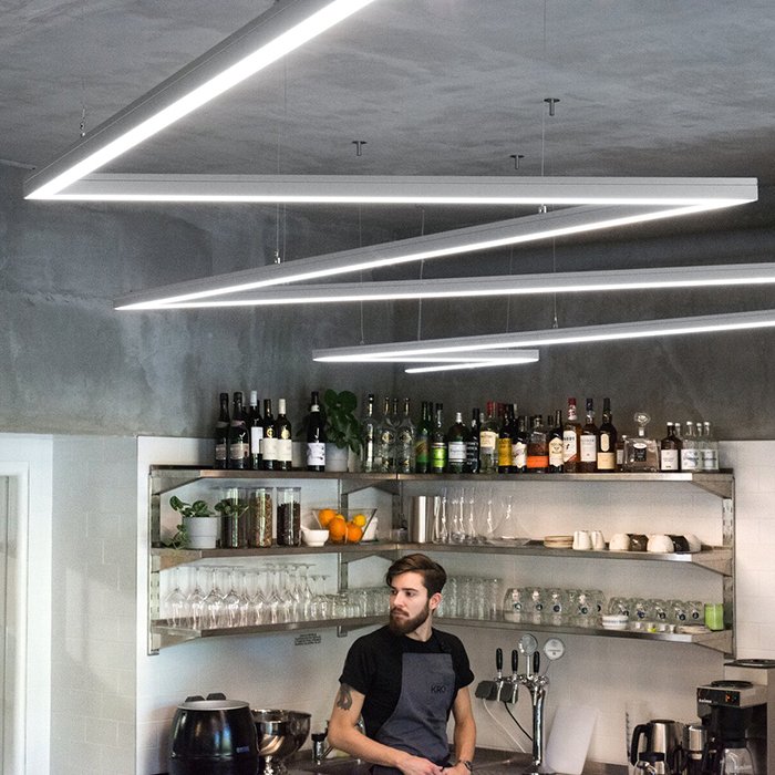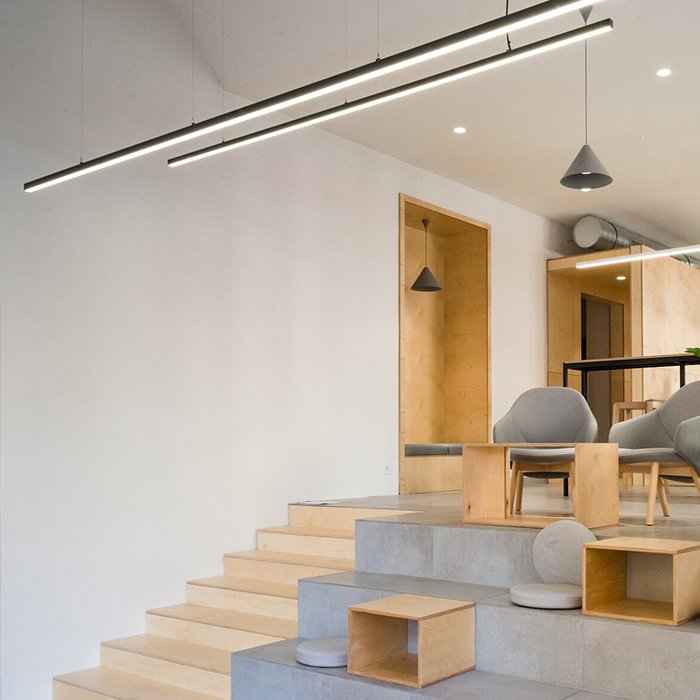 - Stropního lineárního osvětlení - ve formě svěšeného nebo přisazeného výkonného svítidla.