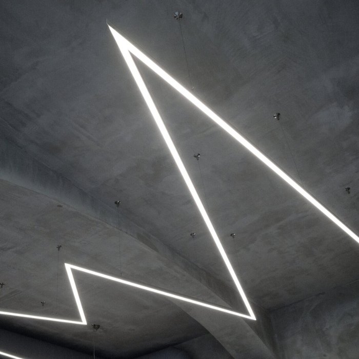 - Lineárního osvětlení polygonálních tvarů - ve formě svěšeného nebo přisazeného výkonného svítidla.