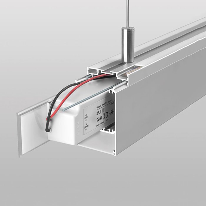 - Zavěšení a svěšení ze stropu v horizontálním směru - závěsný LED profil je možné svěsit a napájet (DC 12V/24V) pomocí speciálního montážního příslušenství - ocelového lanka nebo nerezového/hliníkového kovového prutu.