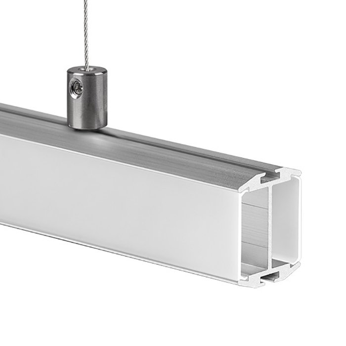 - Zavěšení a svěšení ze stropu v horizontálním směru - závěsný LED profil je možné svěsit a napájet (DC 12V/24V) pomocí speciálního montážního příslušenství - ocelového lanka nebo nerezového/hliníkového kovového prutu.