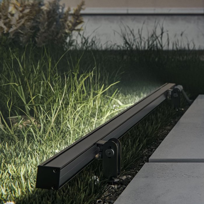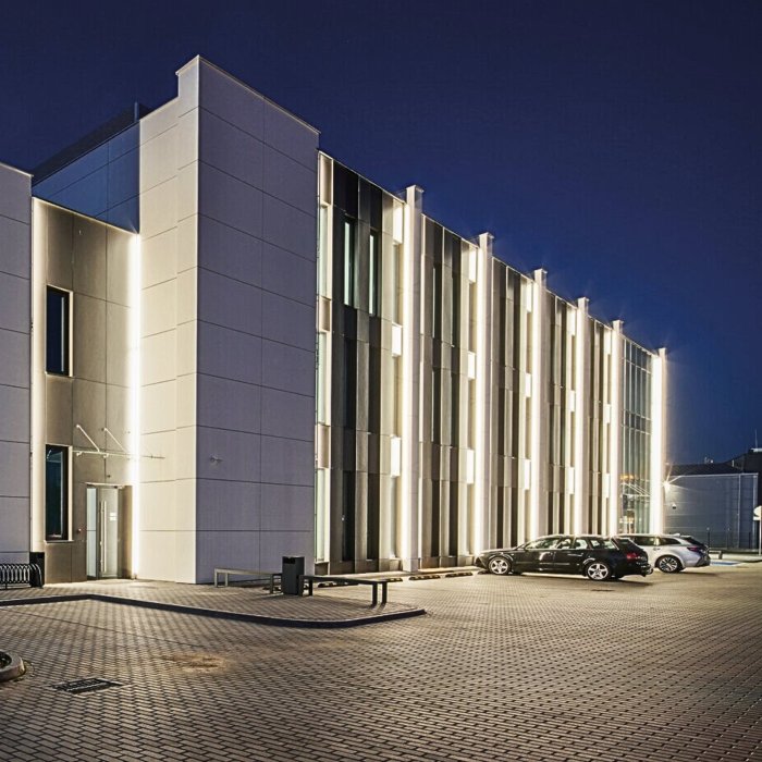 - Lineární osvětlení zdi nebo fasády - podsvícení bosáže průčelí, omítky, fasády nebo skeletu výškových budov.