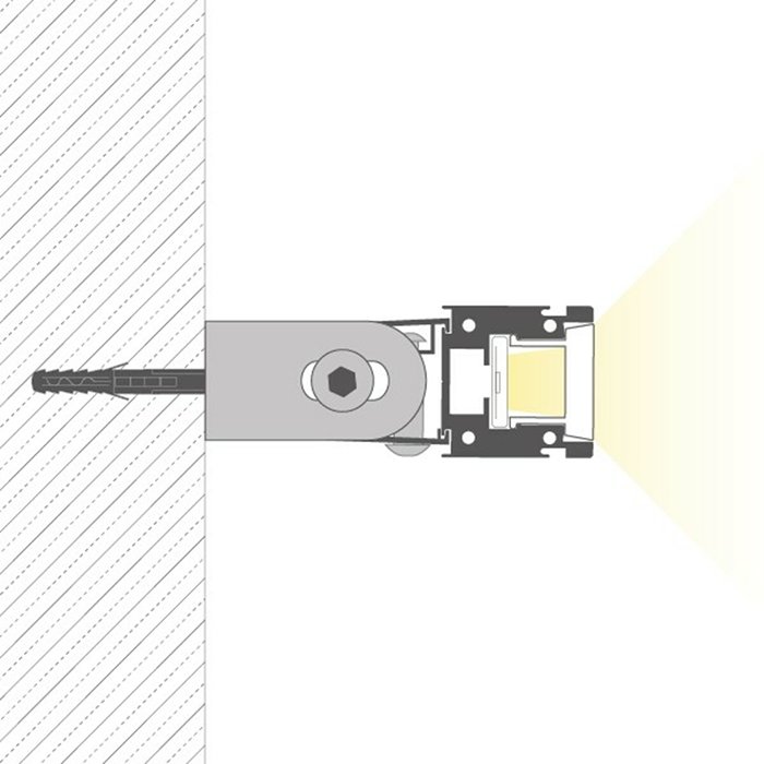 - Přisazení k povrchu v horizontálním nebo vertikálním směru - snadná montáž k povrchu pomocí montážního příslušenství s možností plynulého nastavení úhlu osvětlení.