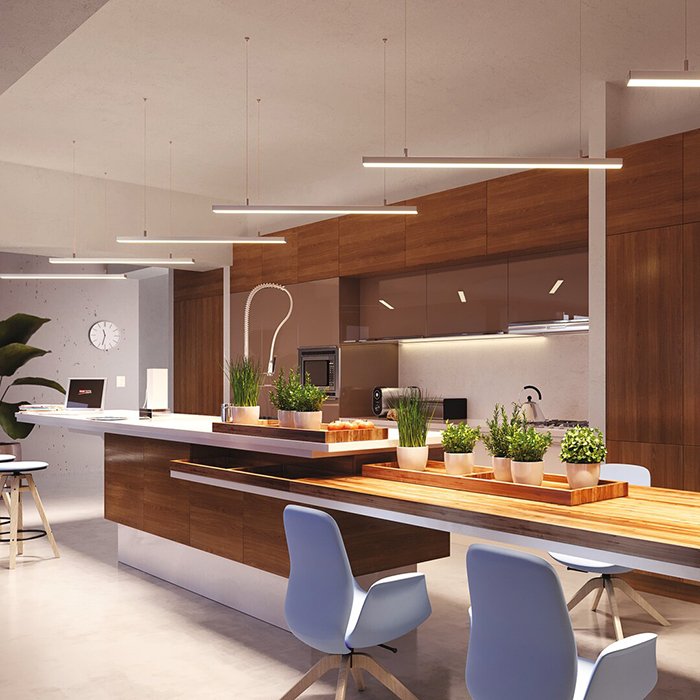 - Lineárního osvětlení polygonálních tvarů - ve formě svěšeného nebo přisazeného výkonného svítidla.