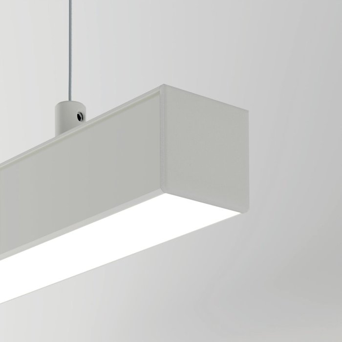 - Záslepky se na závěsný LED profil nasazují ze strany. LED difuzor se do profilu vmáčkne z čelní strany.