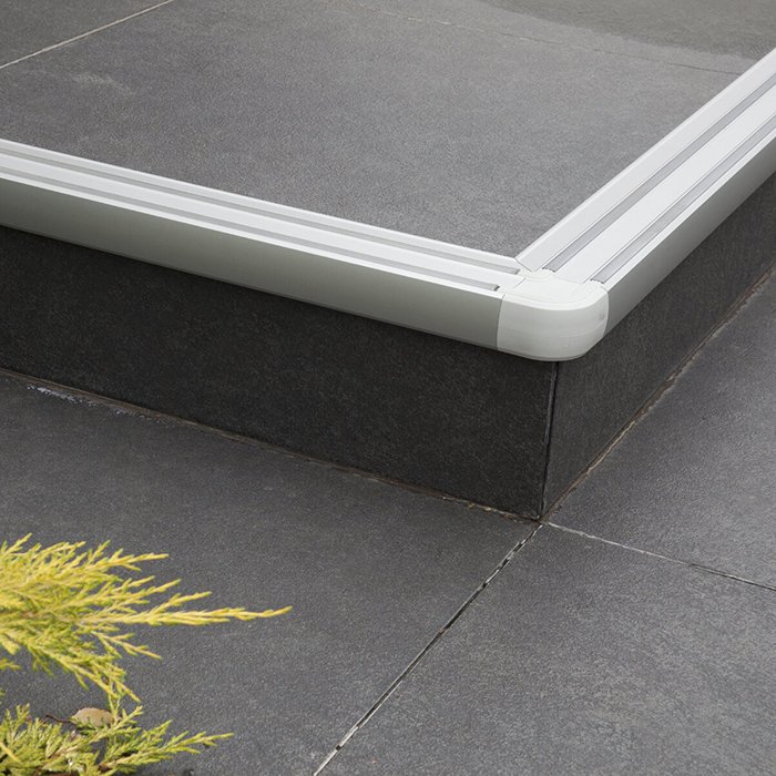 - Protiskluzové prvky včetně zakončení hrany schodu gumou pro zlepšení bezpečnosti