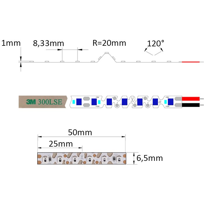 Doplňující technické vlastnosti pro modrý 12V Cik-Cak LED pásek SC12120E