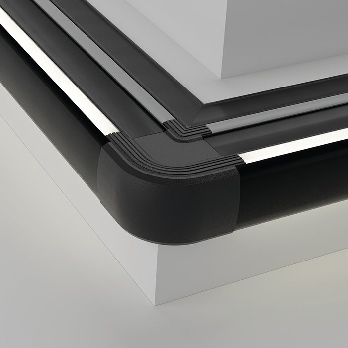 - Zvýšení třídy krytí IP - pro vyrobená svítidla zajišťuje ochranu proti vlhkosti, prachu, mechanickému poškození v místě rohového spojení.