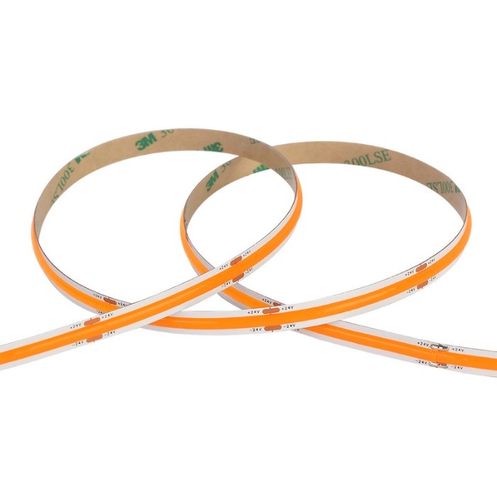 Oranžový COB LED pásek 24V s produktovým označením COB-SC24480 je výrobkem s odpovídajícím standardem jakosti. Použitá technologie COB (Chip On Board) umožňuje umístit velké množství LED čipů do jedné souvislé linie osvětlení. Rovnoměrný světelný tok bez viditelných bodů světla patří mezi největší výhody tohoto výrobku, který vyzařuje pouze oranžové světlo s definovaným sytým odstínem, odpovídajícím specifickým požadavkům na barevnou věrnost a konzistenci. Od prvotního technického návrhu až po koncovou výrobu, byl kladen důraz na to, aby jeho účinnost (lm/W), produktové zpracování a design byly na vysoké úrovni kvality. Ve spojení s dalšími komponenty je tento produkt určen pro malosériovou či individuální výrobu svítidel.