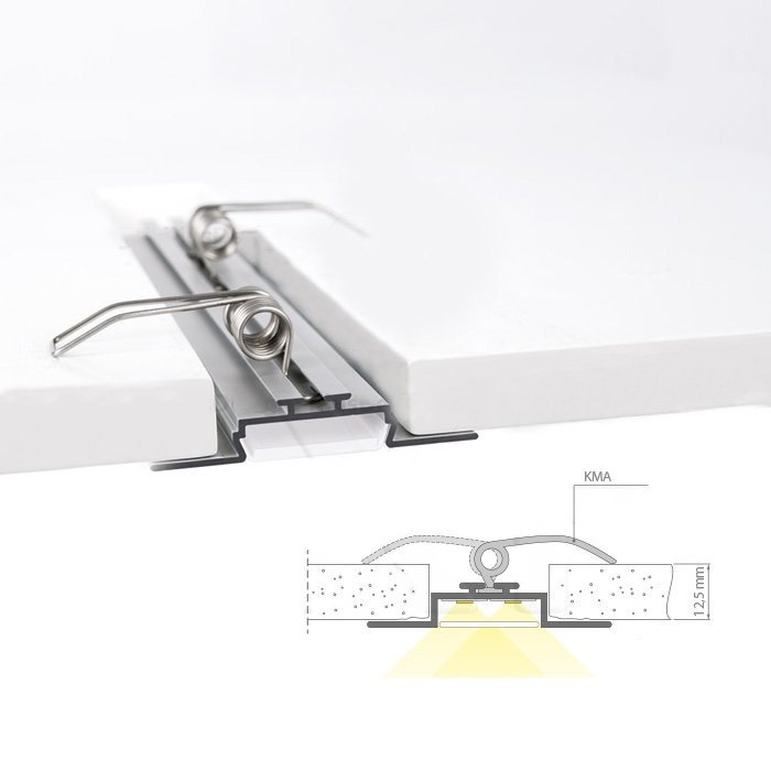 Montáž pružiny na LED profil KLUS KMA je snadná. Přiložené instruktážní video představuje doporučený způsob montáže. Přidáváme několik informací k montáži: