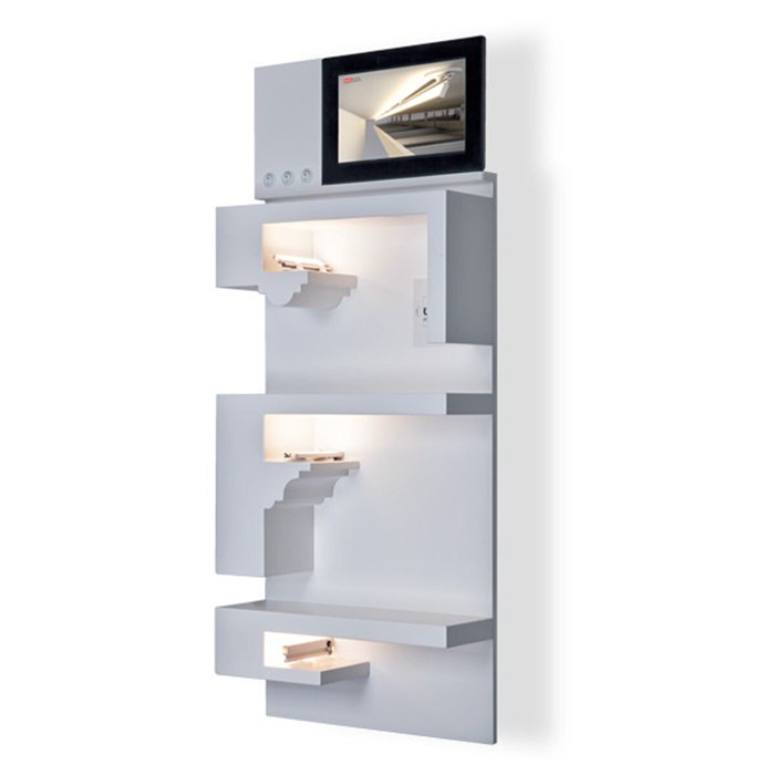 - Rozsvícení produktů ( v profilech jsou instalované LED pásky 3500K) + panel obsahuje veškerou potřebnou elektroniku.
