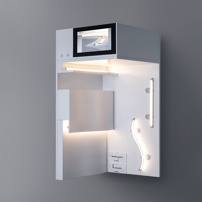 - Rozsvícení produktů (v profilech jsou instalované LED pásky 3500K) + panel obsahuje veškerou potřebnou elektroniku.