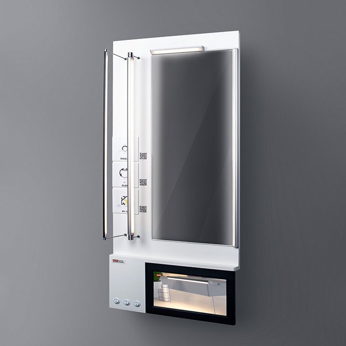 - Rozsvícení produktů (v profilech jsou instalované LED pásky 3000K) + panel obsahuje veškerou potřebnou elektroniku.