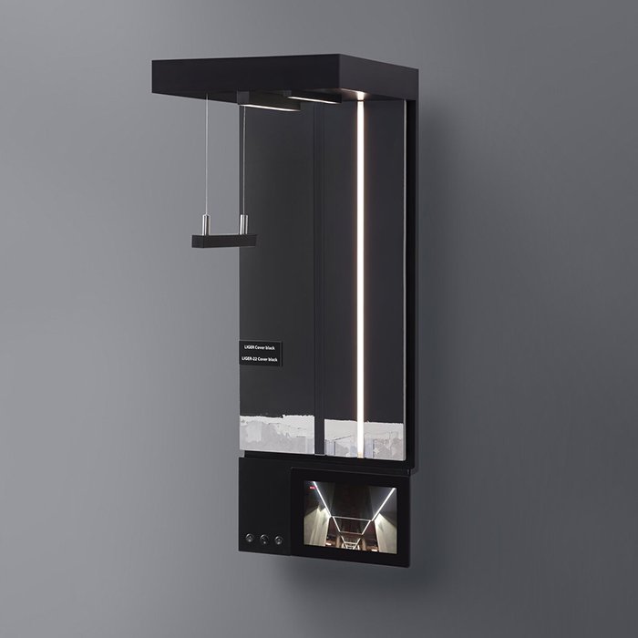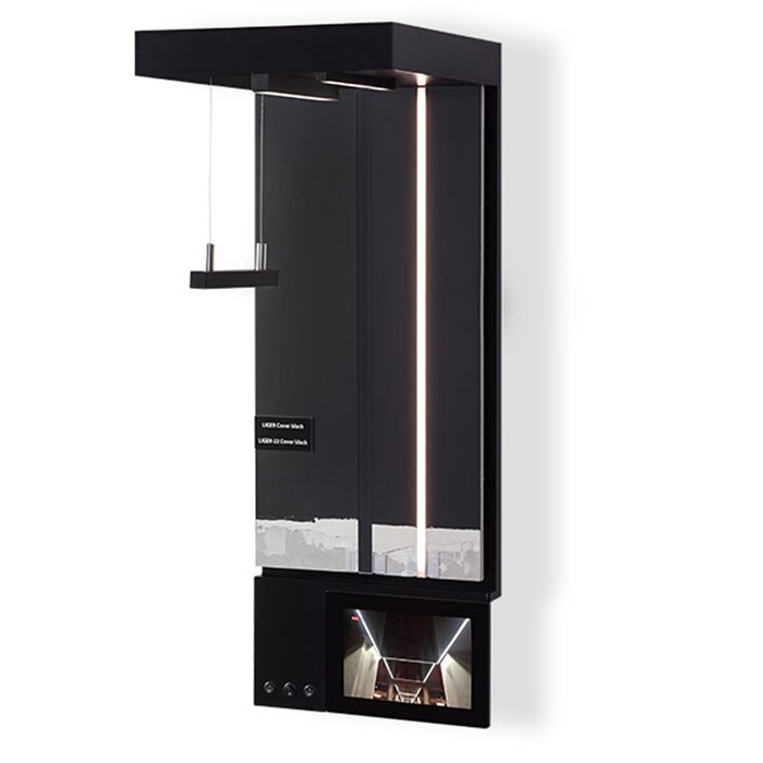- Rozsvícení produktů (v profilech jsou instalované LED pásky 3500K) + panel obsahuje veškerou potřebnou elektroniku.