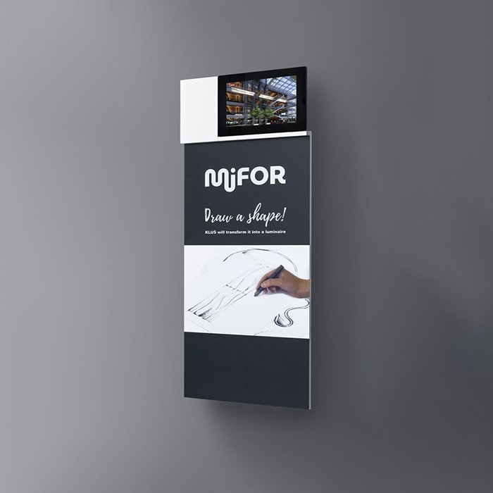 - Video prezentace - panel je opatřen tabletem, na kterém je nahrána produktová video prezentace.