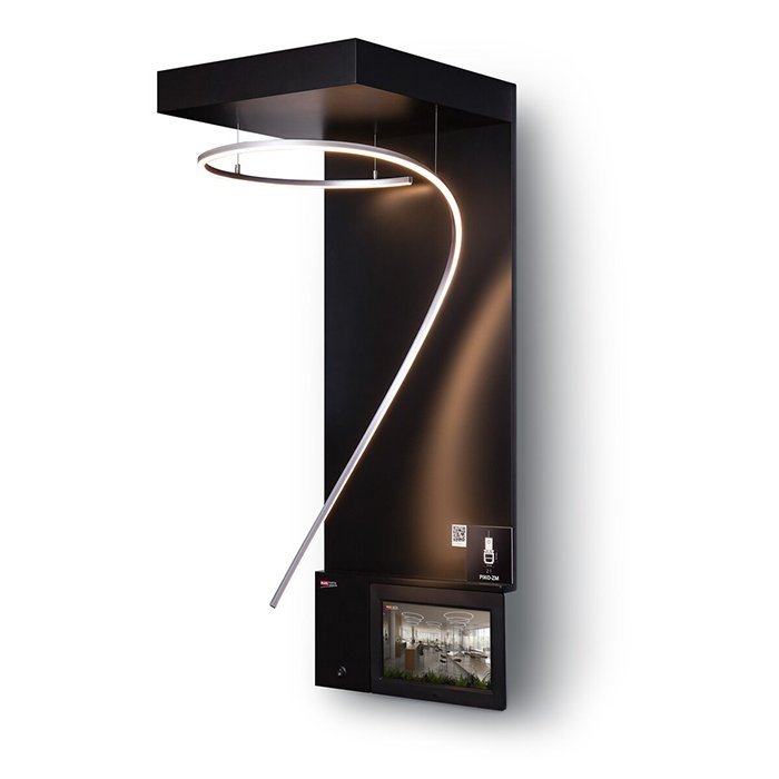- Rozsvícení produktů (v profilech jsou instalované LED pásky 3000K) + panel obsahuje veškerou potřebnou elektroniku.