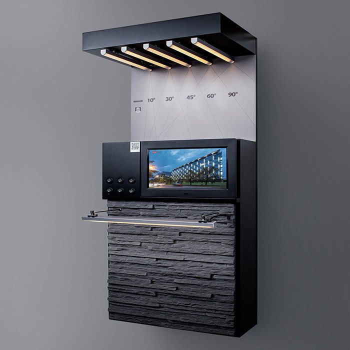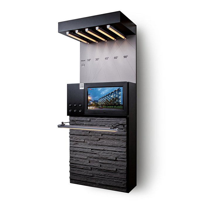 - Rozsvícení produktů (v modulech jsou instalované LED 3000K) + panel obsahuje veškerou potřebnou elektroniku.