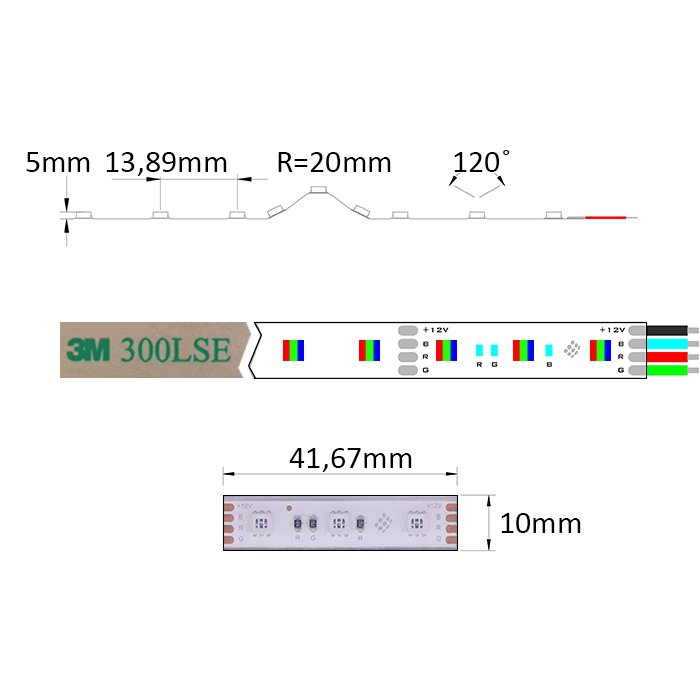- 4,166cm dělitelnost jednotlivých modulů - krácení IP68 RGB pásku RGB1272 je možné pomocí technických nůžek pouze na vyznačeném místě.