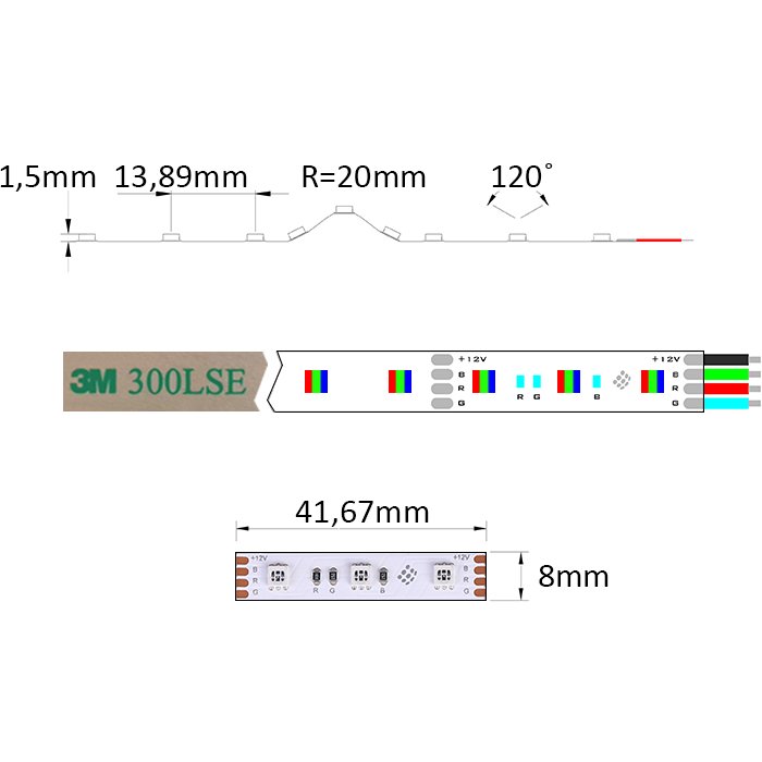 Doplňující technické vlastnosti pro RGB 12V LED pásek RGB1272