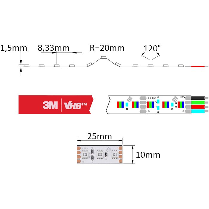 Doplňující technické vlastnosti pro RGB 12V LED pásek RGB12120