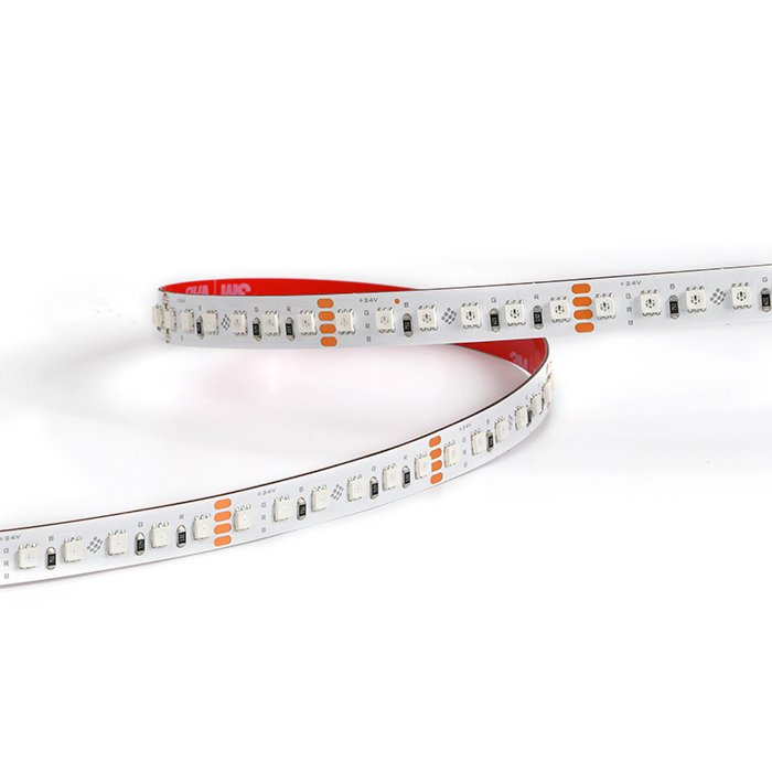 RGB LED pásek 24V s produktovým označením RGB24120 je výrobkem špičkových světelných parametrů a mechanických vlastností. Od prvotního technického návrhu až po koncovou výrobu byl kladen důraz na to, aby jeho účinnost (lm/W), produktové zpracování a design splňovaly vysoké standardy kvality, určené pro profesionální světelné instalace. Výhodou technologie RGB, která obsahuje tři základní barvy (Red, Green, Blue) je možnost vytvářet široké spektrum barev pro dekorativní osvětlení nebo světelné efekty. Společně s dalšími komponenty slouží 24V RGB pásek pro malosériovou a individuální výrobu dekorativních svítidel.