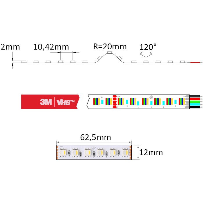 Doplňující technické vlastnosti pro RGBW 24V LED pásek RGBW2496-25
