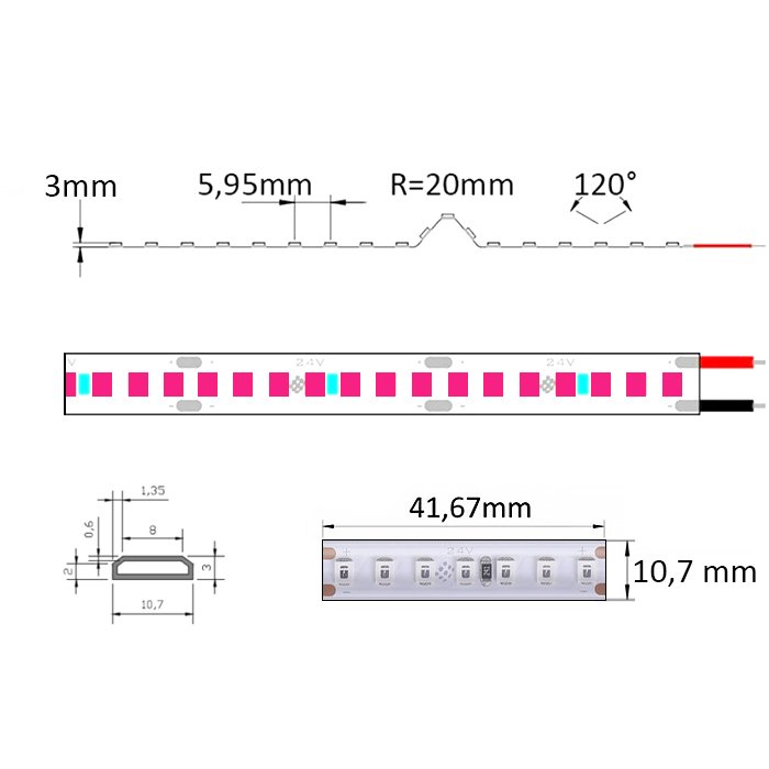 Růžový LED pásek 24V Lux Miners IP65 | 10W | 168LED