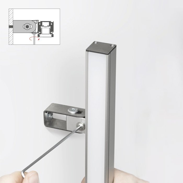 - Uchycení LED profilu do úchytky formou nasunutí a dotažení pomocí aretačního šroubu.