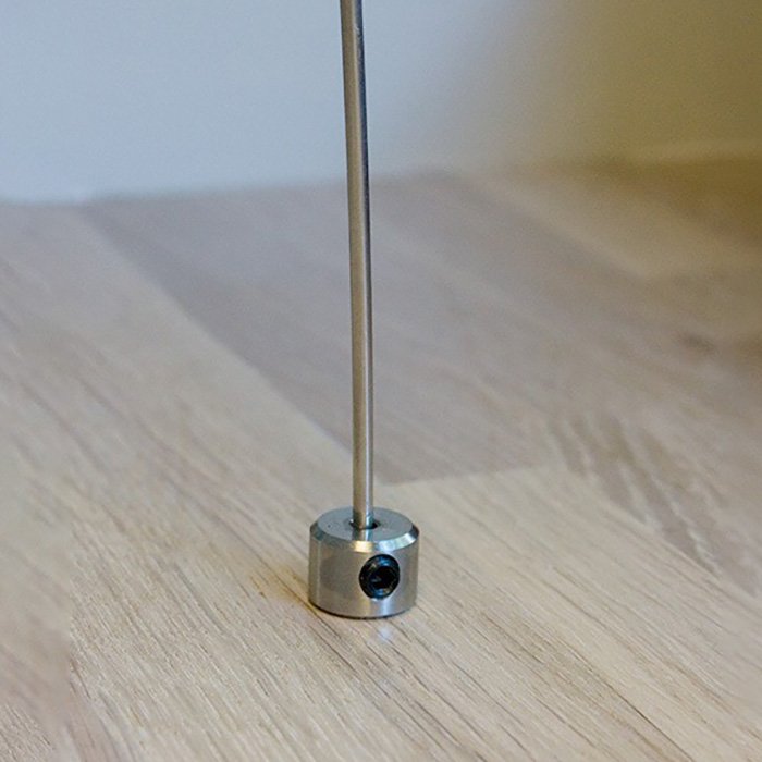 - Možnost regulace délky ocelového lanka, kovového prutu a ramena je možná jeho zkrácením. Fixace lanka, prutu nebo ramene v závěsce pomocí imbusového cvrčku.