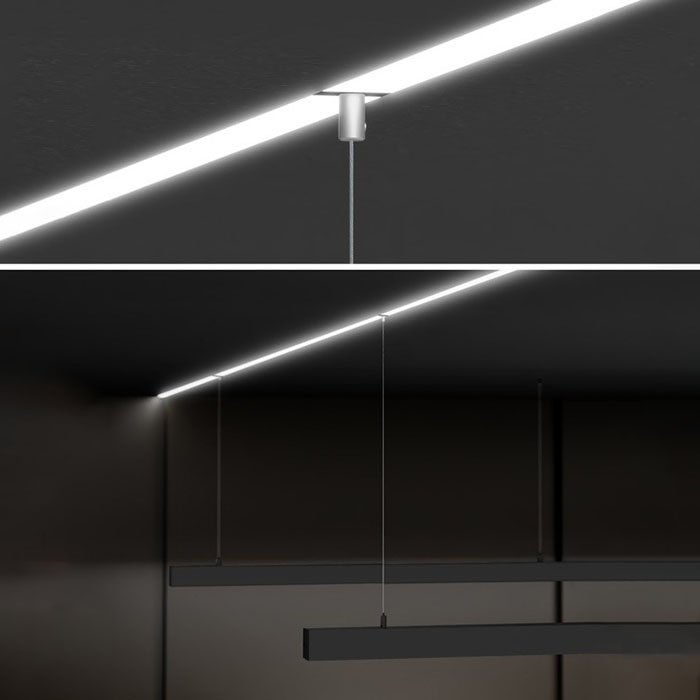 Výhodou závěsného úchytu pro ALU profily OS22-LIN-Z je volitelná možnost (kterou můžete a nemusíte využít) jednopólového napájení DC 12V/24V. Díky tomu můžete napájet LED pásek umístěný v hliníkovém profilu skrze #tablink#montaz#ocelové lanko##. Tento způsob instalace zcela eliminuje potřebu samostatného napájecího kabelu. Zavěšení a napájení poskytuje svobodu v navrhování svítidel a jejich umístění v prostoru, aniž by byl narušen estetický dojem napájecími kabely. Využijete také stropní a nástěnné závěsné prvky pro výrobu svítidel: