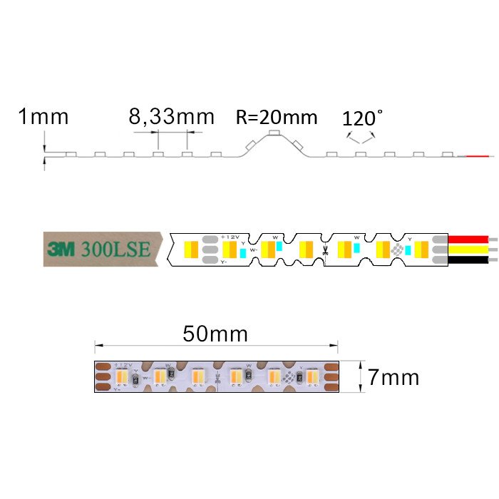 Základní technické vlastnosti pro CCT ohebný LED pásek CCT12120E