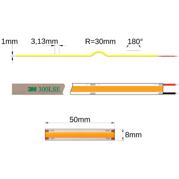 Doplňující technické vlastnosti pro žlutý COB 24V LED pásek COB-SC24480